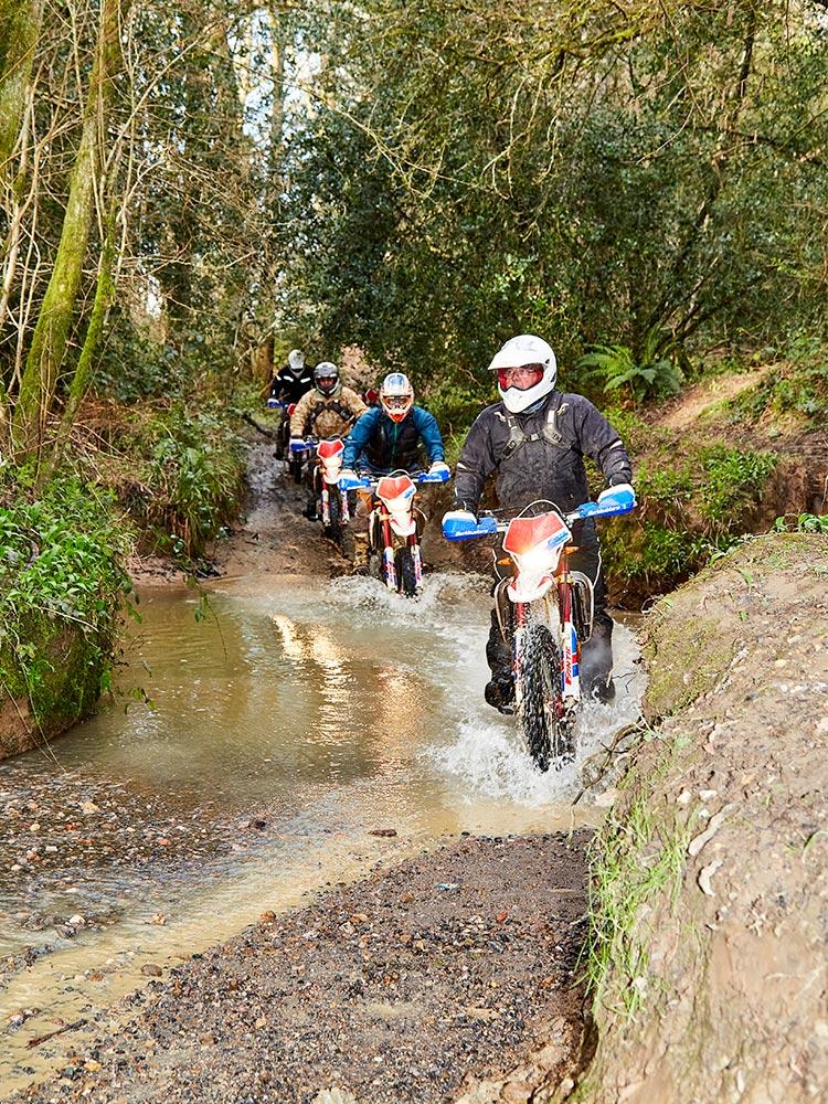 Our fleet of well maintained 250cc four stroke enduro motorcycles are the ideal bike for tackling the green roads of the Surrey Hills.